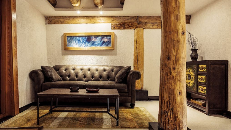这家民宿的房间不是很精致,但是也非常舒适,房间内部有白色的大床,看似老旧的柜子,原木风格的木头柱子等,另外,民宿的一些地方有非常有趣的藏族图画,很是经典。