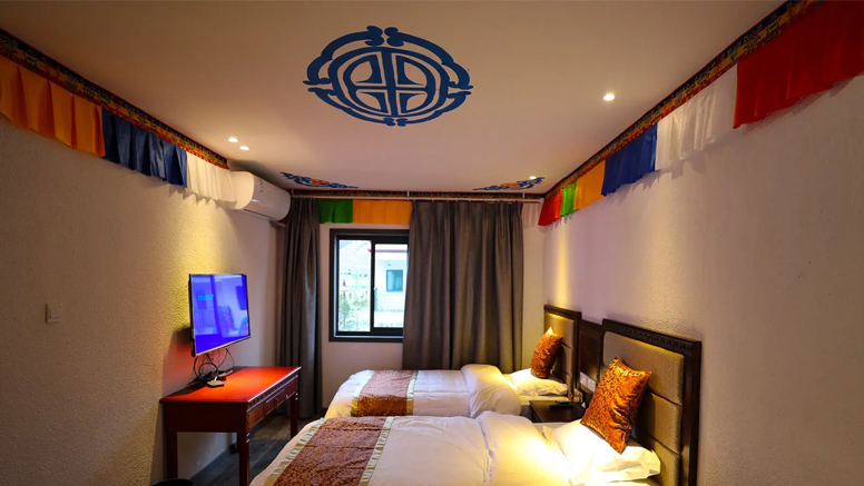 拉萨宫悦别院客栈位于拉萨市色拉南路,坐落在团结新村东门。初见时,仿光照进了现实,走进了浪漫的国度,美不胜收,从大门口到院子里,每一处都可以成为拍民族风大片的素材。