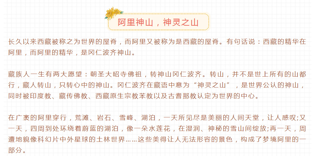 西藏,壮美的自然风光和独特的风土民俗。西藏既有独特的雪域风光,又不缺失南国的妩媚,在这样一个神秘的地方,原始文化和现代文明共存,原住藏族人民和外来访客共融,俗世喧嚣和澄静信仰共生,宗教和民俗交织,让人仿佛是在尘世和天国中进行穿越。